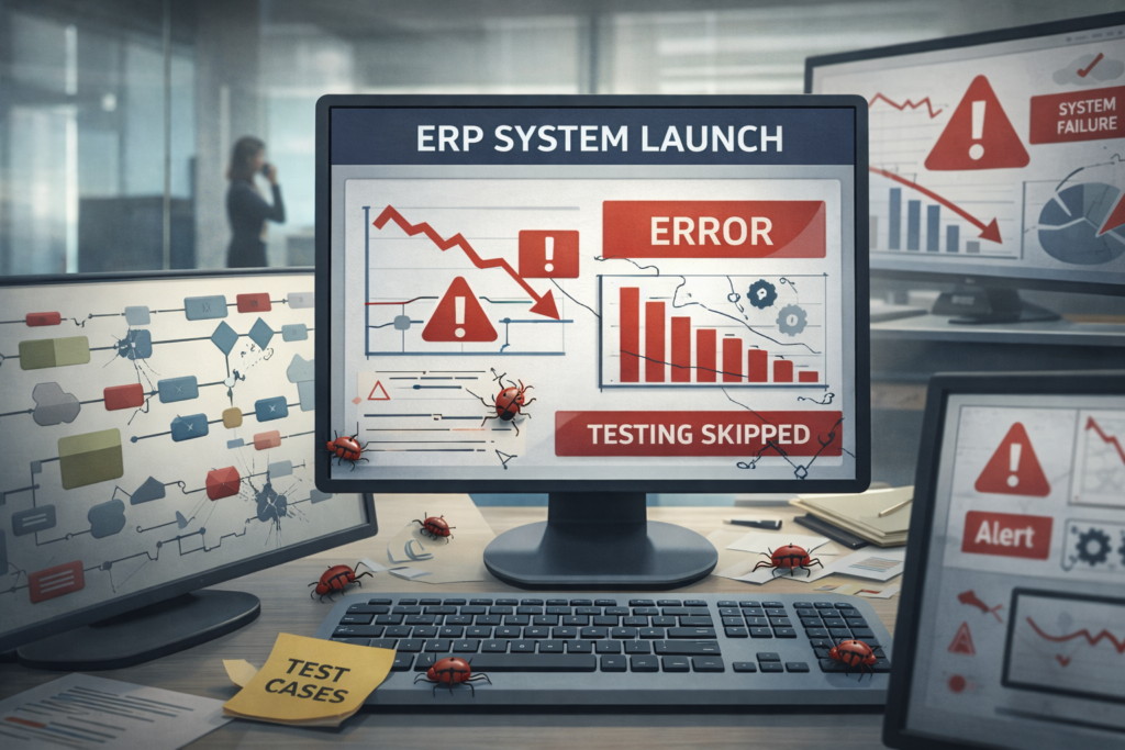 Lack of testing, if disregarded or rushed, can lead to internal chaos post-launch, particularly with supply chain-related problems. Issues with contractor invoicing or a lack of oversight of financial data may arise.