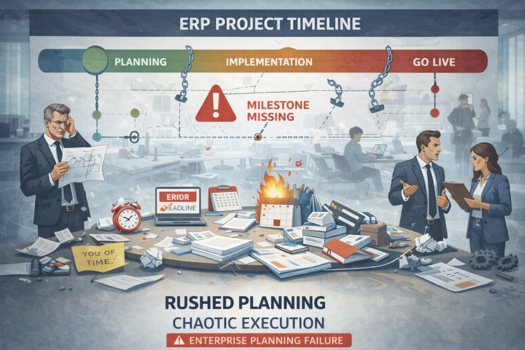 Insufficient project planning can result in overlooked aspects of ERP implementation. Rushing the planning phase may lead to problems post-launch, such as wrong access permissions, end users not utilising the software efficiently, and decision-making based on inaccurate data.