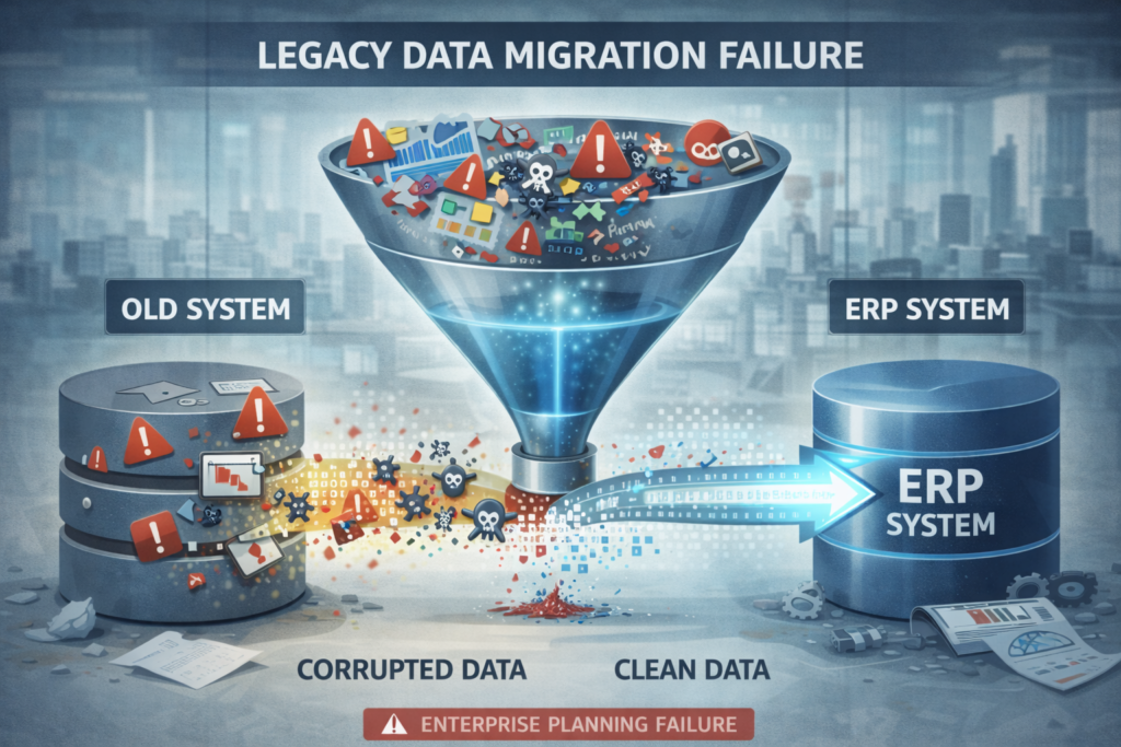 Failure to map, import, and cleanse legacy data is rare, given the existence of pre-existing data during ERP implementation. Understanding the types and historical management of existing data is crucial for reaping the benefits of the new system and avoiding skewed data or missing historical insights.