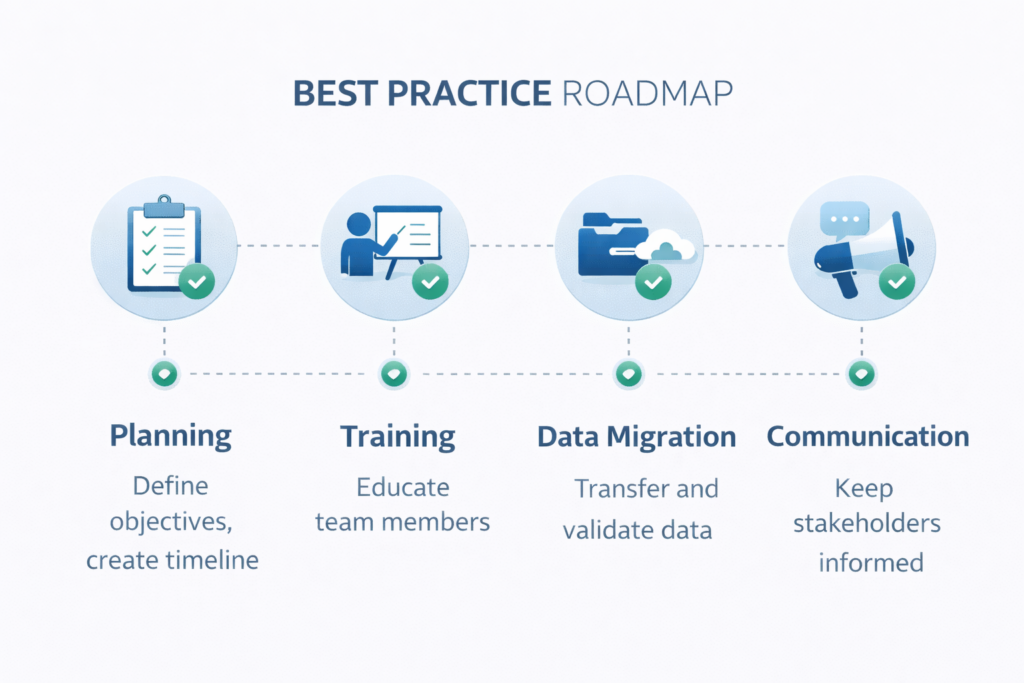 Merely adopting a phased implementation approach doesn’t guarantee success. Adhering to ERP implementation best practices in each phase is equally crucial. The overarching best practices include: