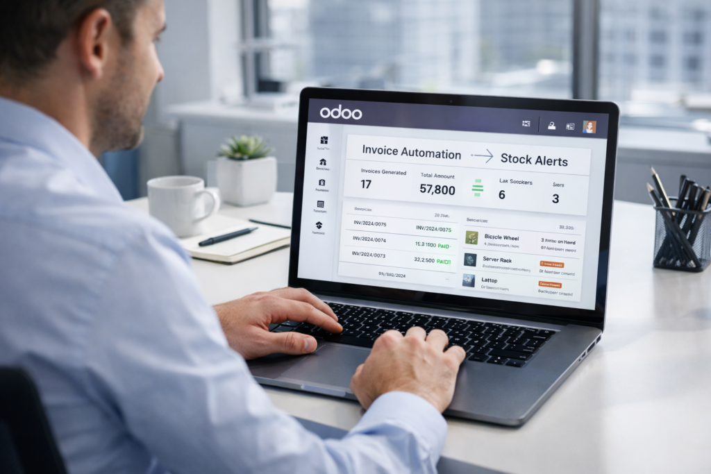 Manual work slows productivity and increases mistakes. Odoo ERP automates repetitive business tasks such as: